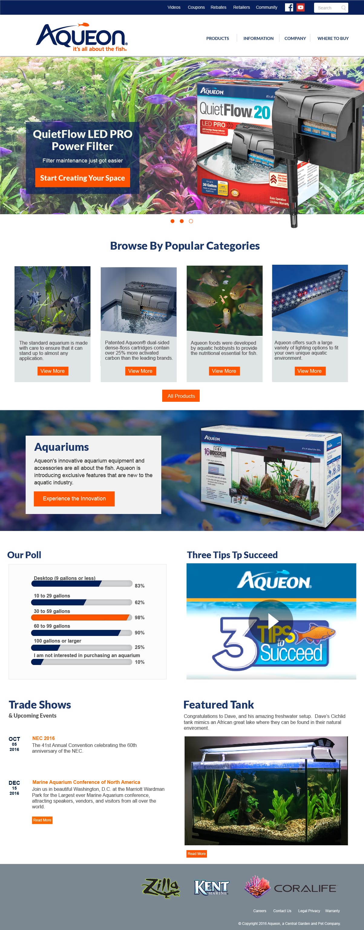 As part of a larger family of brands under the Central Garden & Pet umbrella, Aqueon needed a new website that reflected their reinvigorated branding.