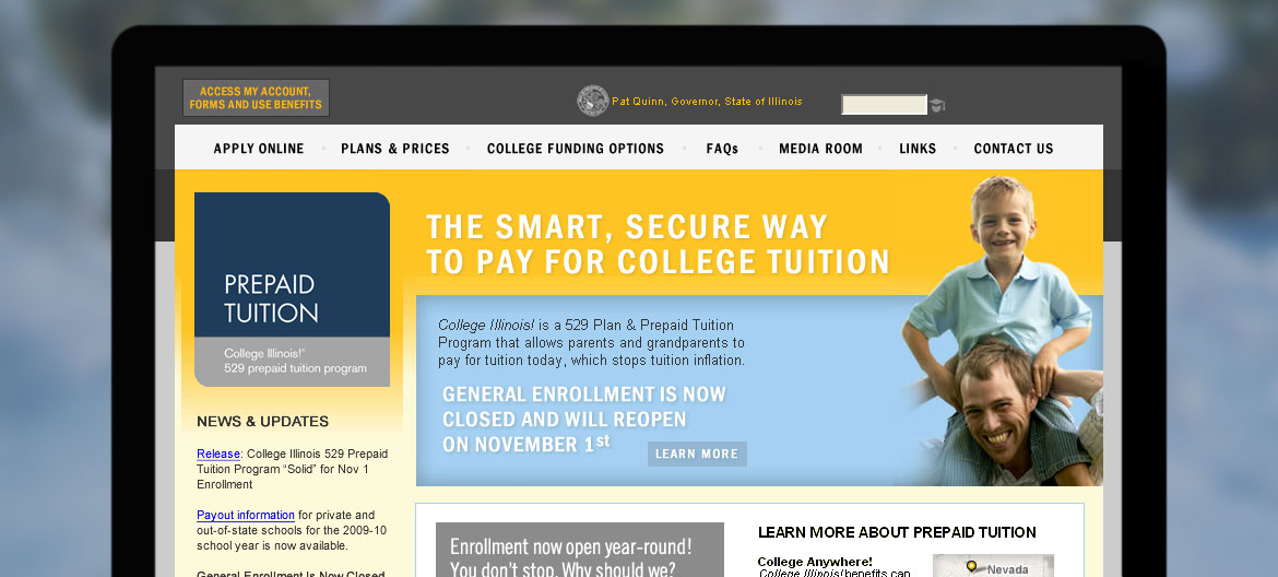 College Illinois! had no means to take online applications, and so the ability to purchase contracts through the site was a top priority.