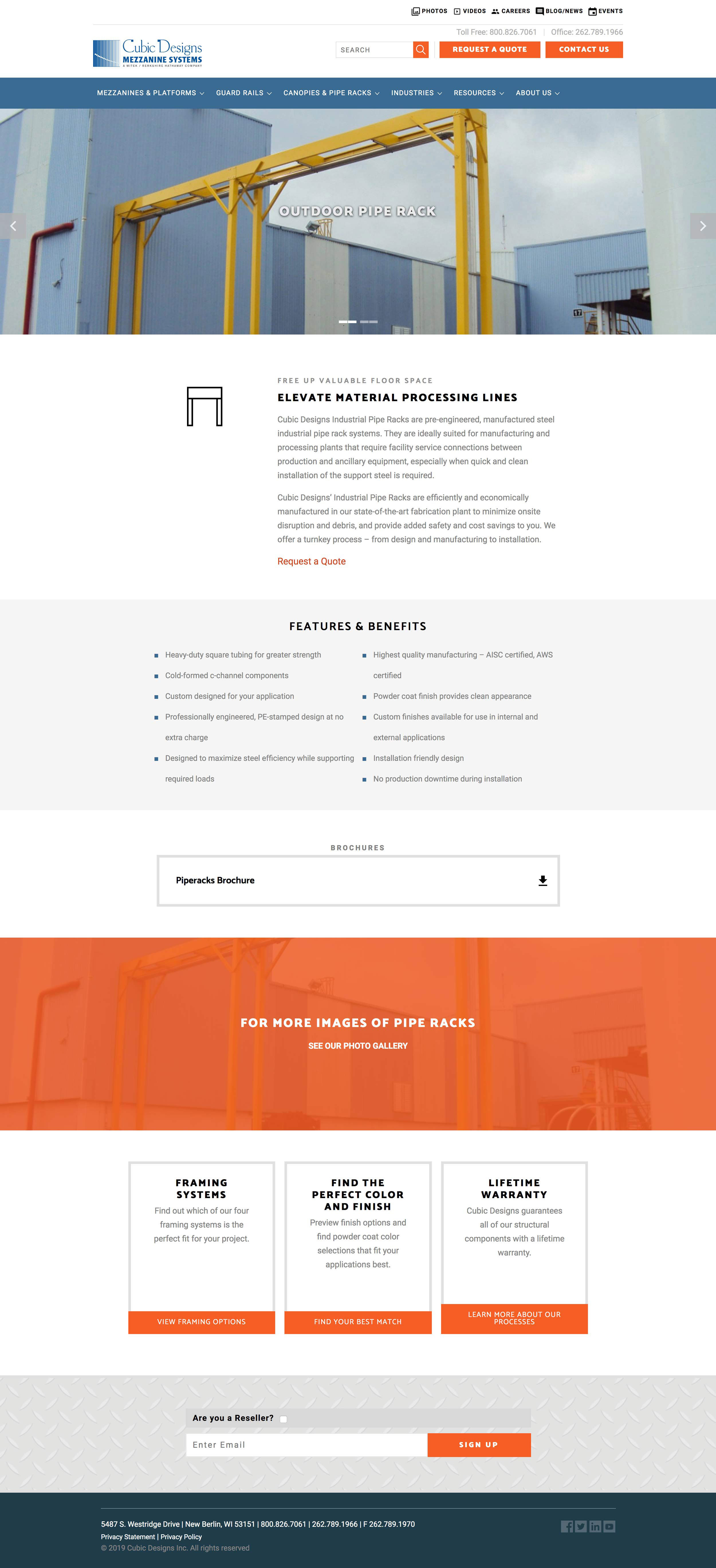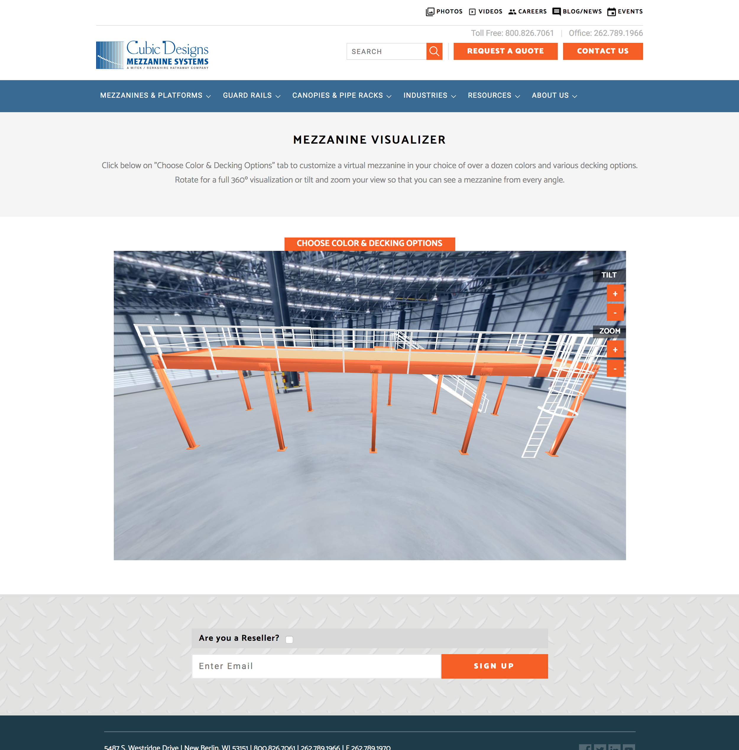 On the heels of a website redesign, Cubic Designs, a leader in mezzanine systems, was elated with the new features we implemented for them, like their 3-D configurator. As their fully integrated digital consultant, we knew the new site was only the beginning of something bigger for Cubic.