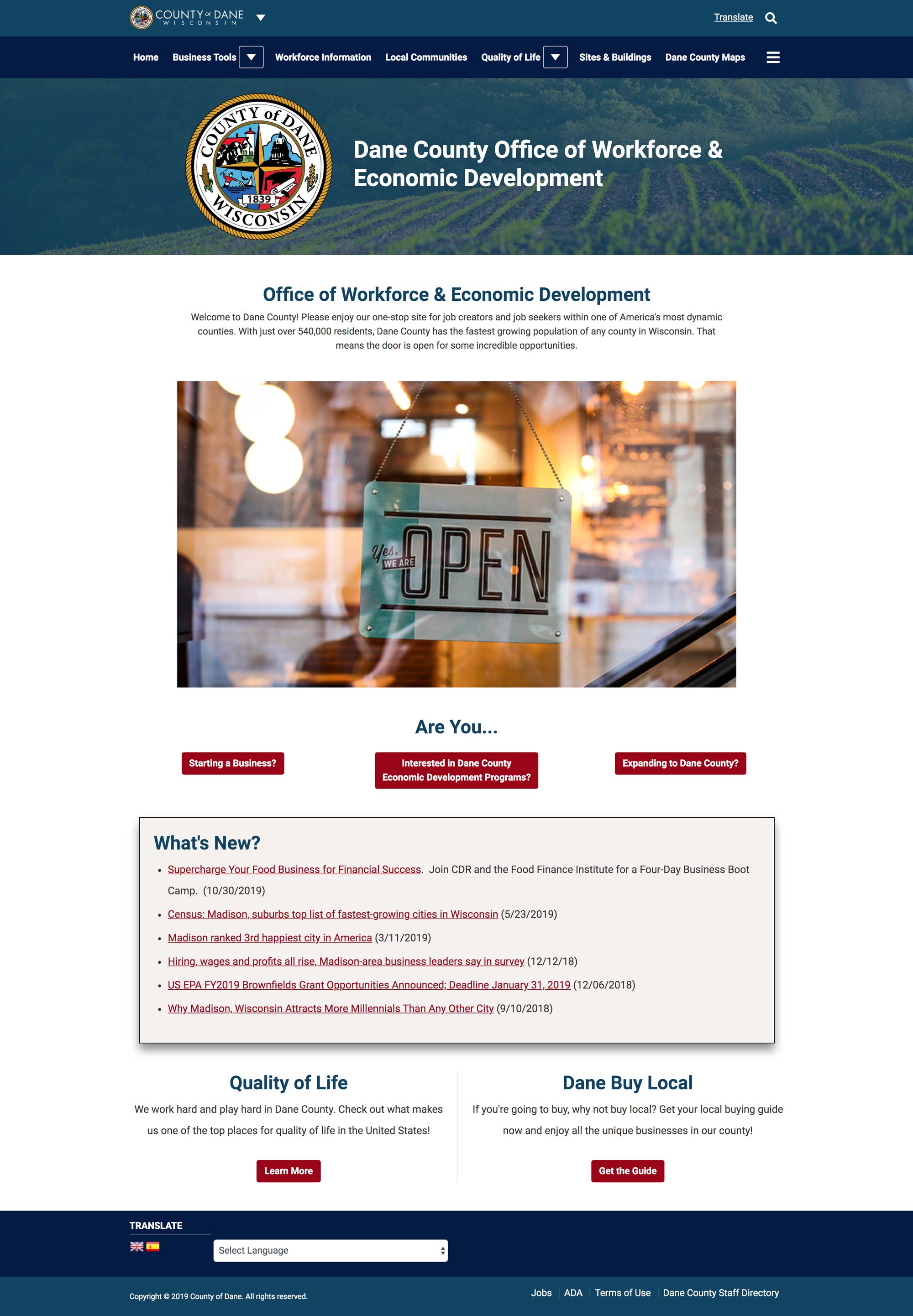 Dane County, Wisconsin, is home to more than 500,000 residents within 60 cities, villages, and towns. The Dane County website serves residents, workers, and visitors and is a conduit to hundreds of government, business and recreation websites.