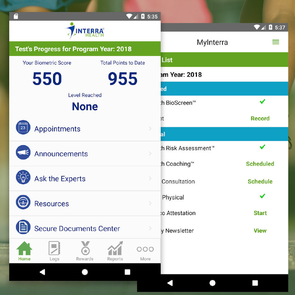 Interra offers a client portal and mobile app that allows users to track their wellness activities and progress and access health resources. Their mobile applications needed a creative refresh and technology updates to support users on the latest devices.