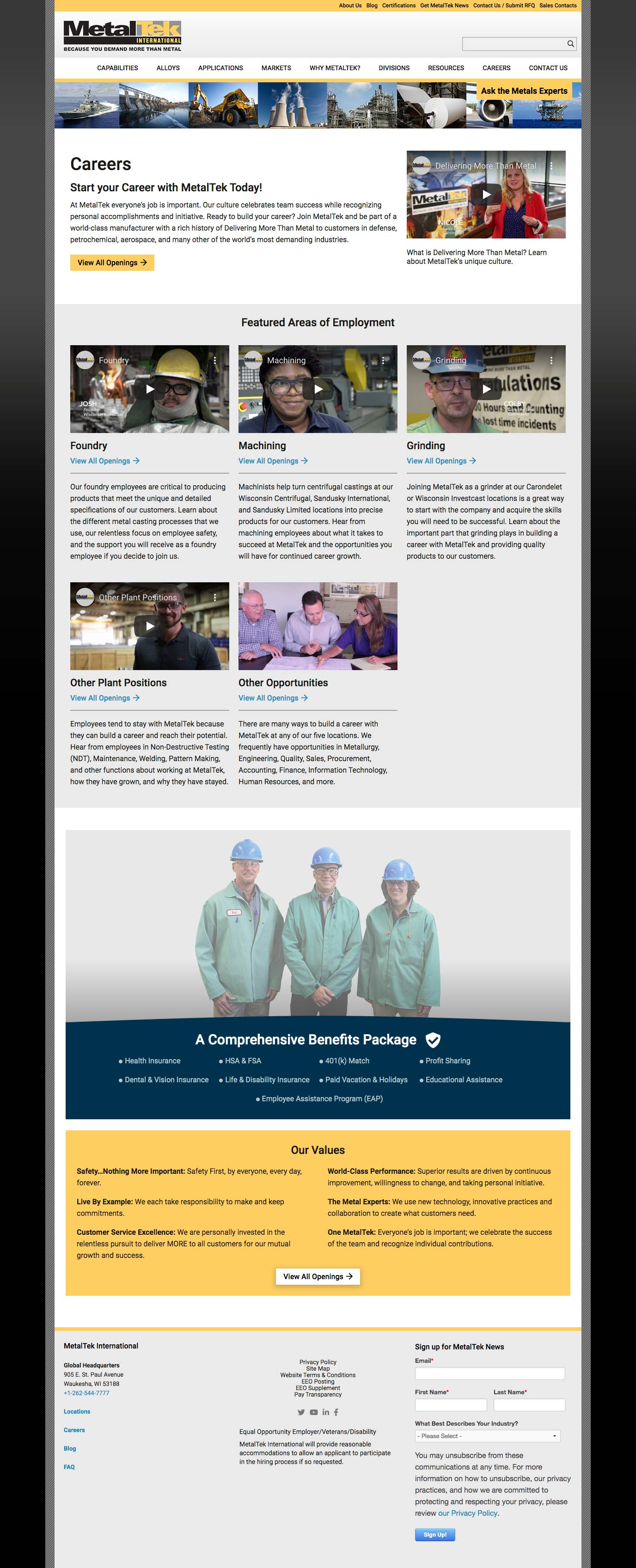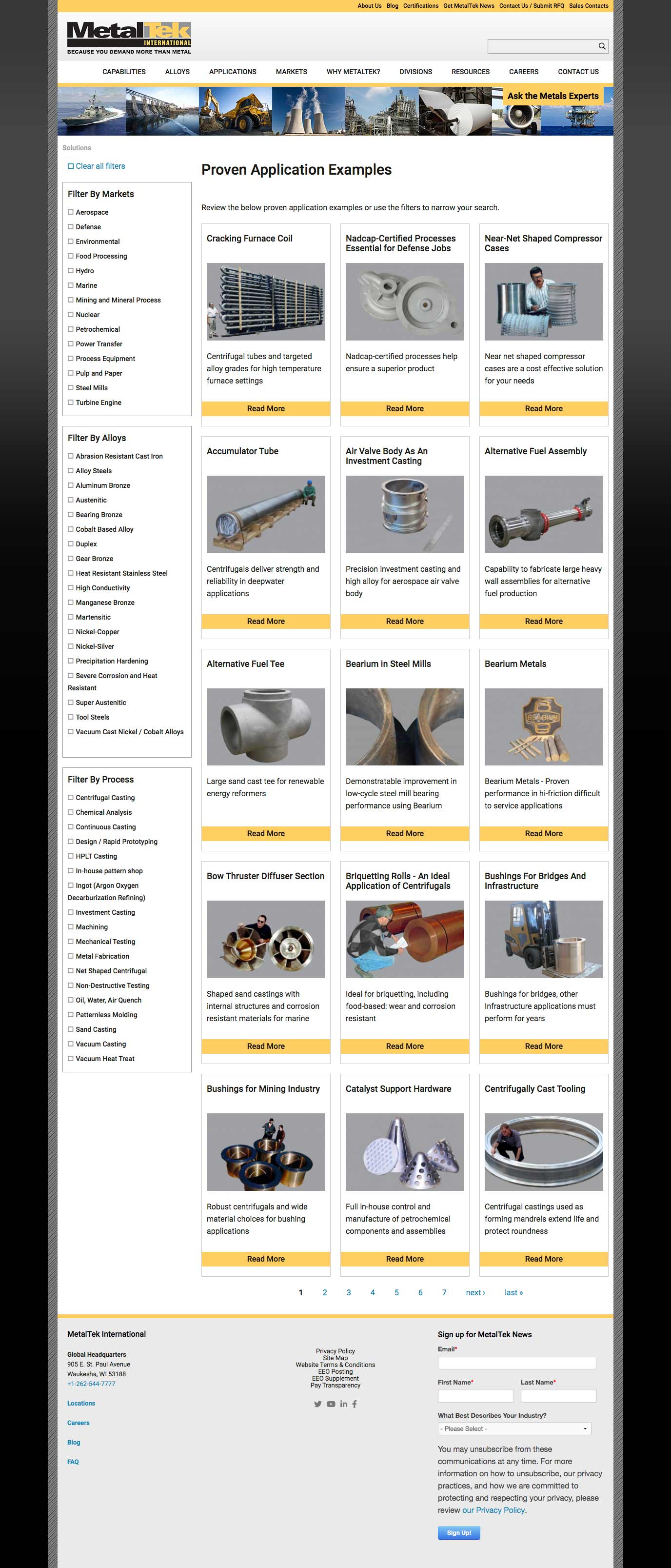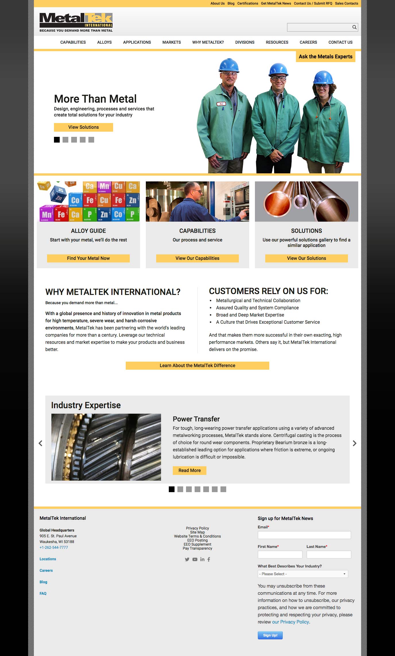 MetalTek has an enormous catalog of alloys for niche applications, from aerospace to weather technology. Their website was not easy to promote, discover or search. To increase conversions, MetalTek needed to accommodate the content needs of their customers and put engaging calls to action in place.