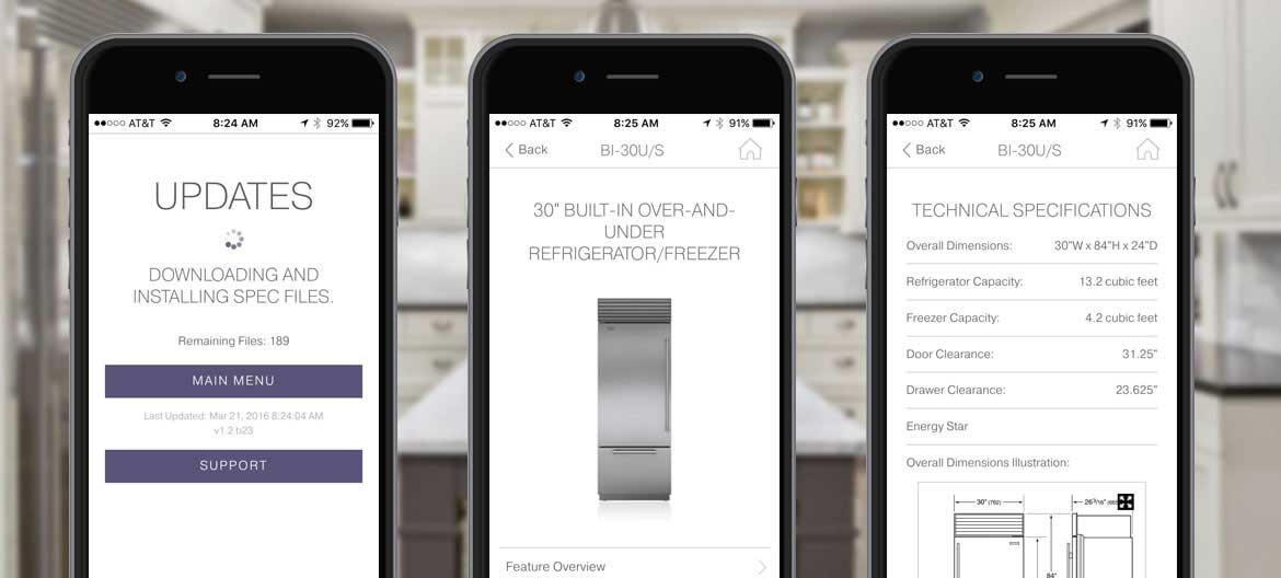 Portability in the field was a key criteria, as was up-to-date product specification information. A mobile app for tablets and mobile devices was needed that could keep Sub-Zero and Wolf product information at users' fingertips when they're away from the internet, and sync updates when connected.