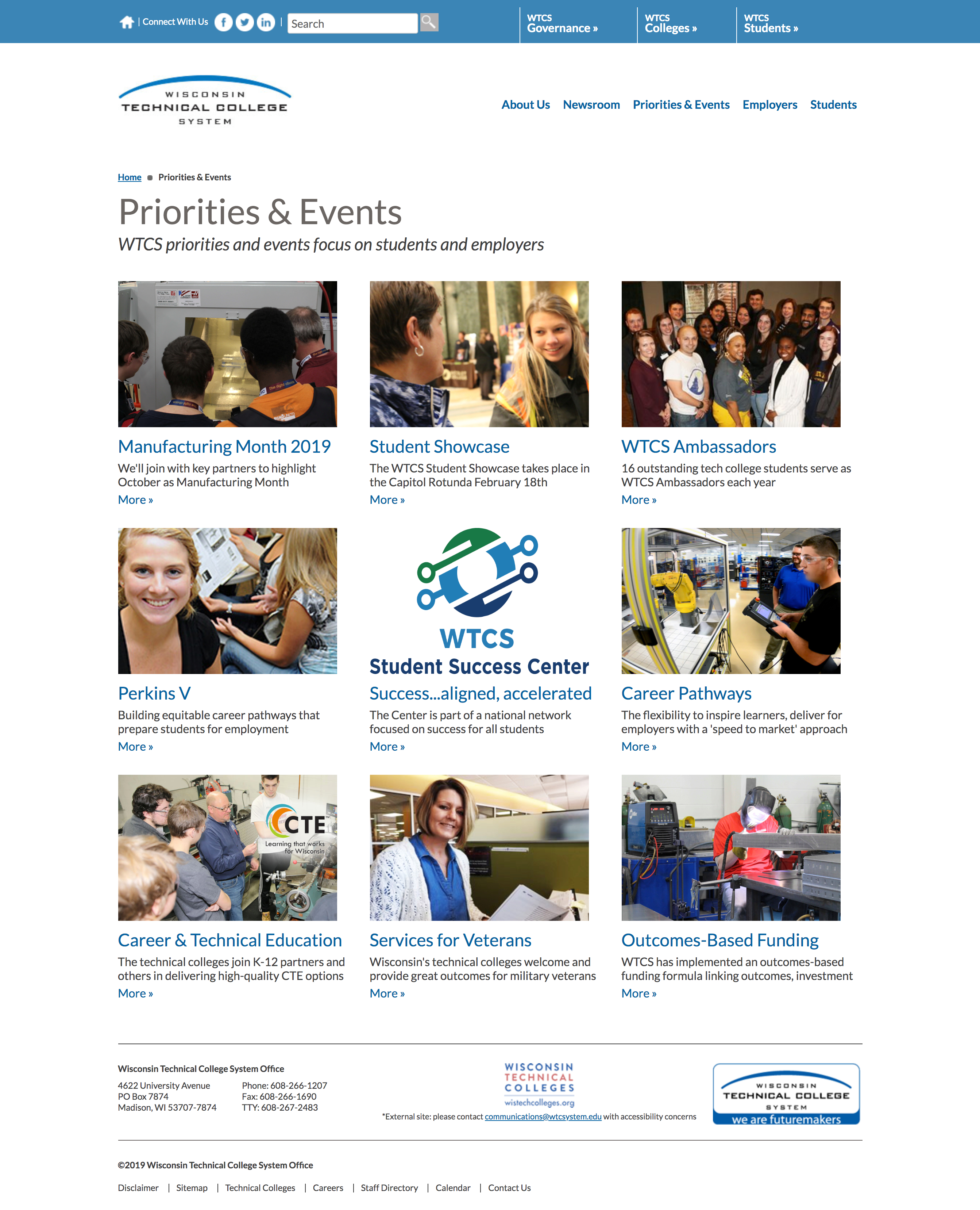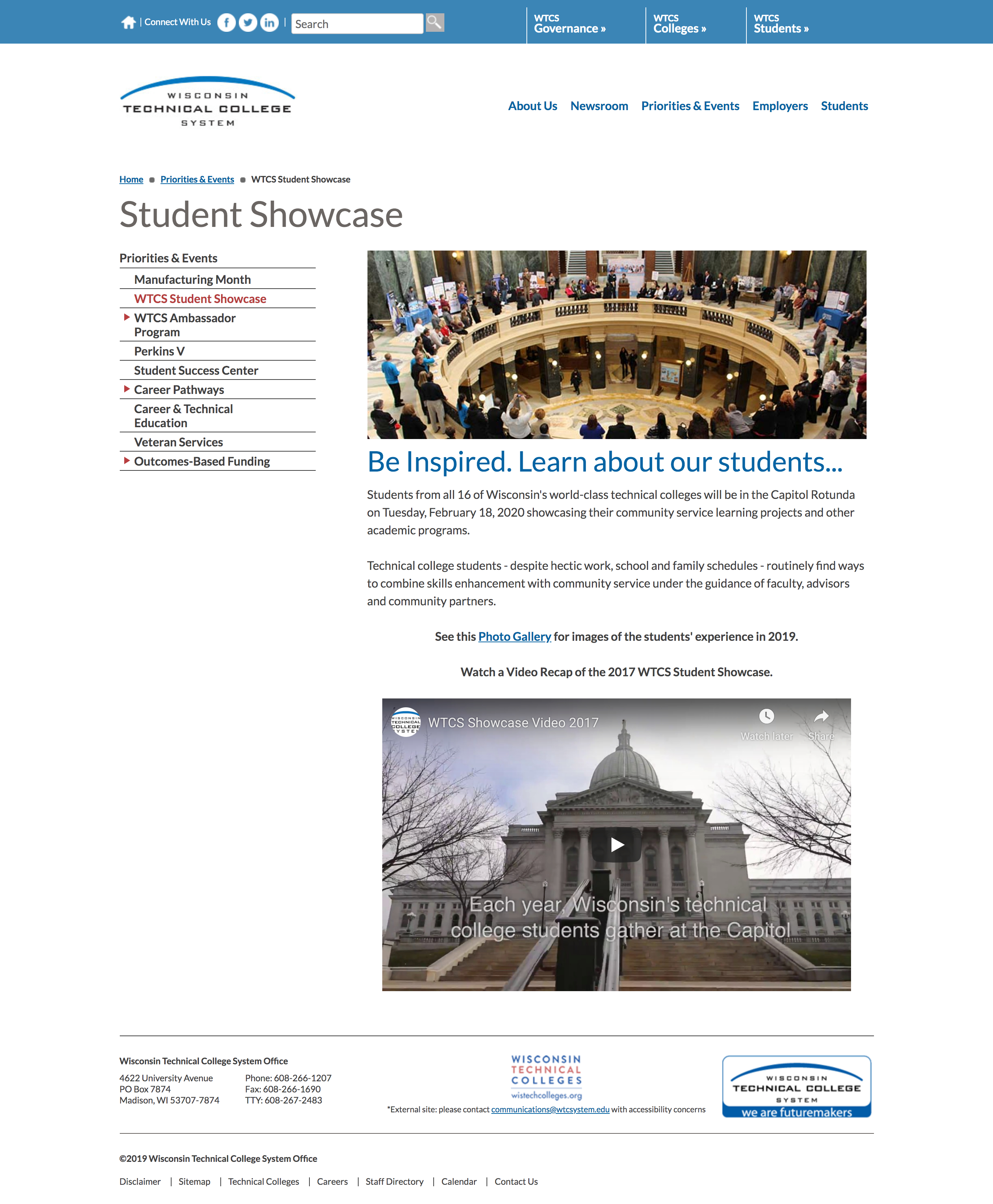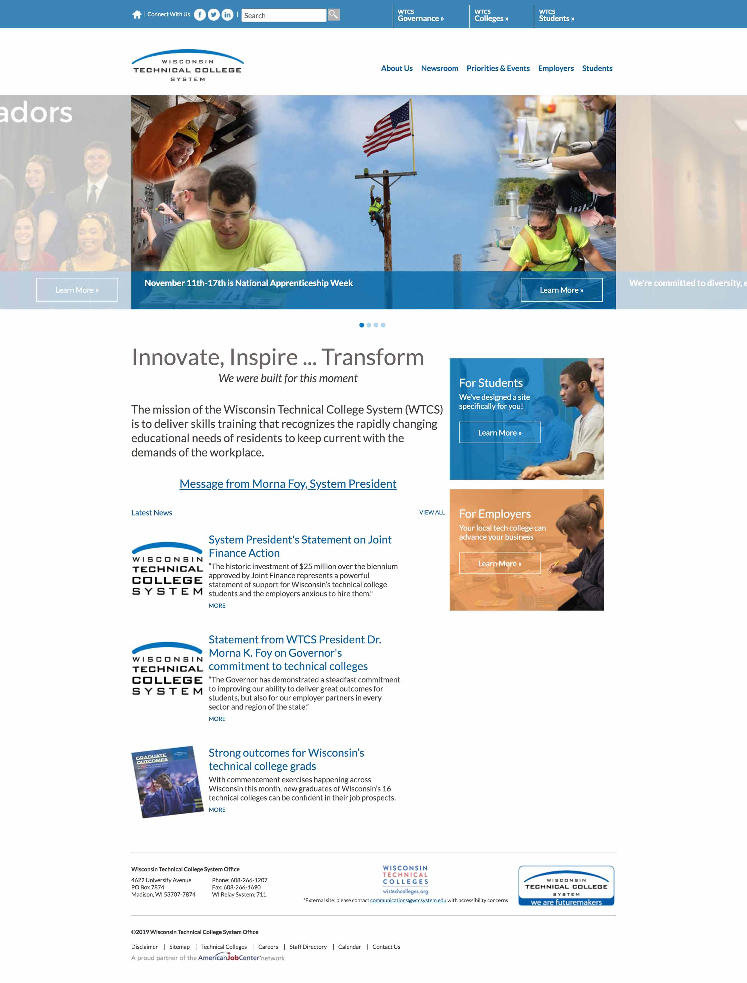 Wisconsin Technical College System wanted a website that spoke to all of its various target audiences and highlighted new stories and initiatives.